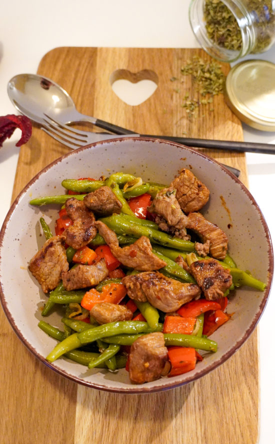Rindfleisch-Gemüsepfanne mit Süsskartoffeln