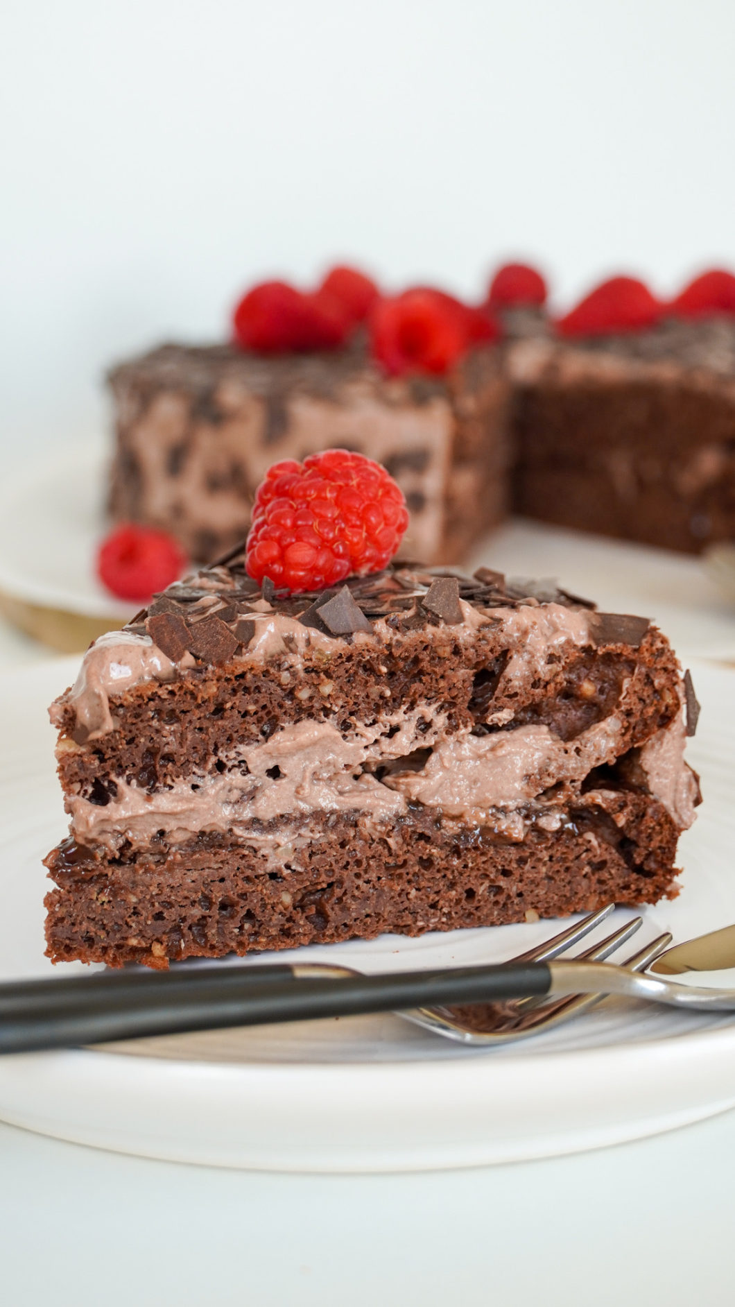 - Gut auskühlen lassen und in der Zwischenzeit alle Zutaten für die Creme vermengen. Den Boden in 2 Teile schneiden und abwechselnd mit der Crème belegen.