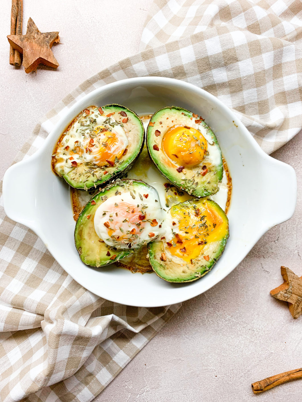 - Den Backofen auf 180°C bei Ober/-Unterhitze vorheizen. Die Avocado halbieren und entkernen. Auf ein Backblech am besten in eine Backform legen und das Ei in die Avocado geben.