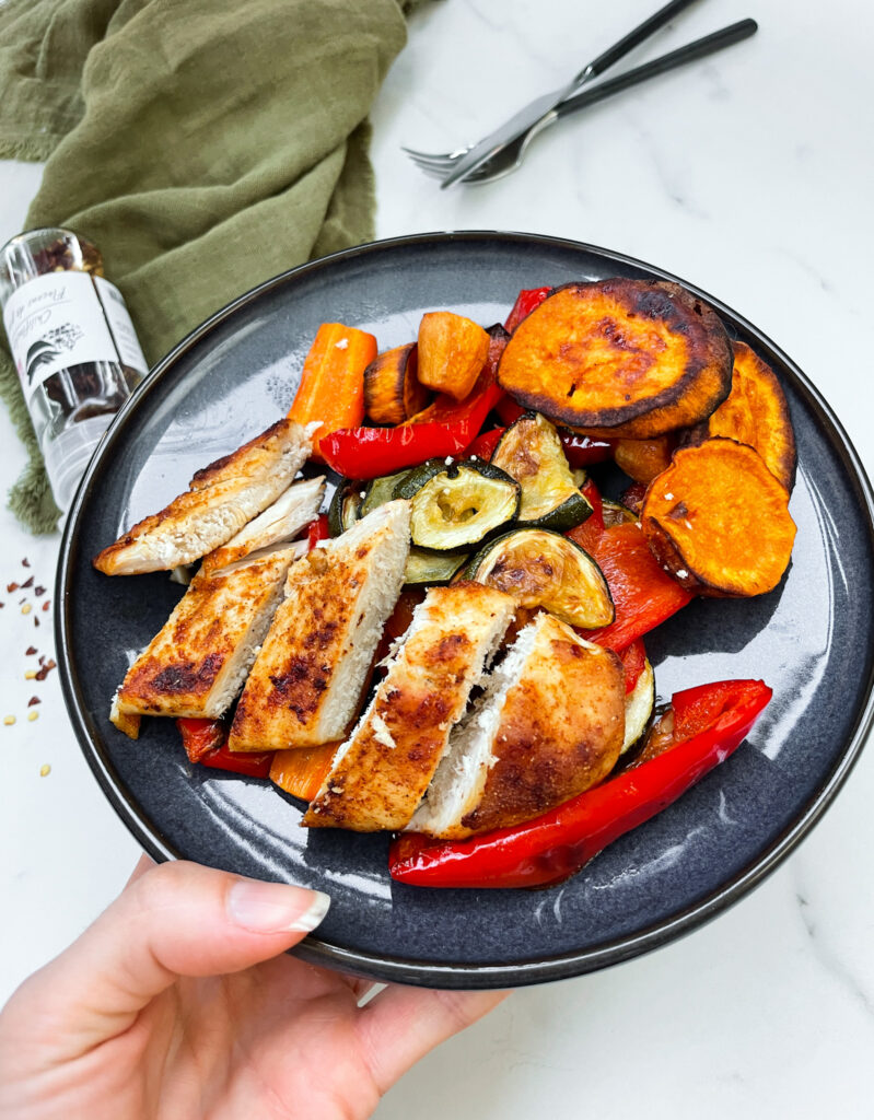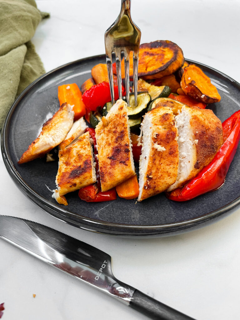 Hühnchenbrust mit Süsskartoffeln und gemischtes Gemüse
